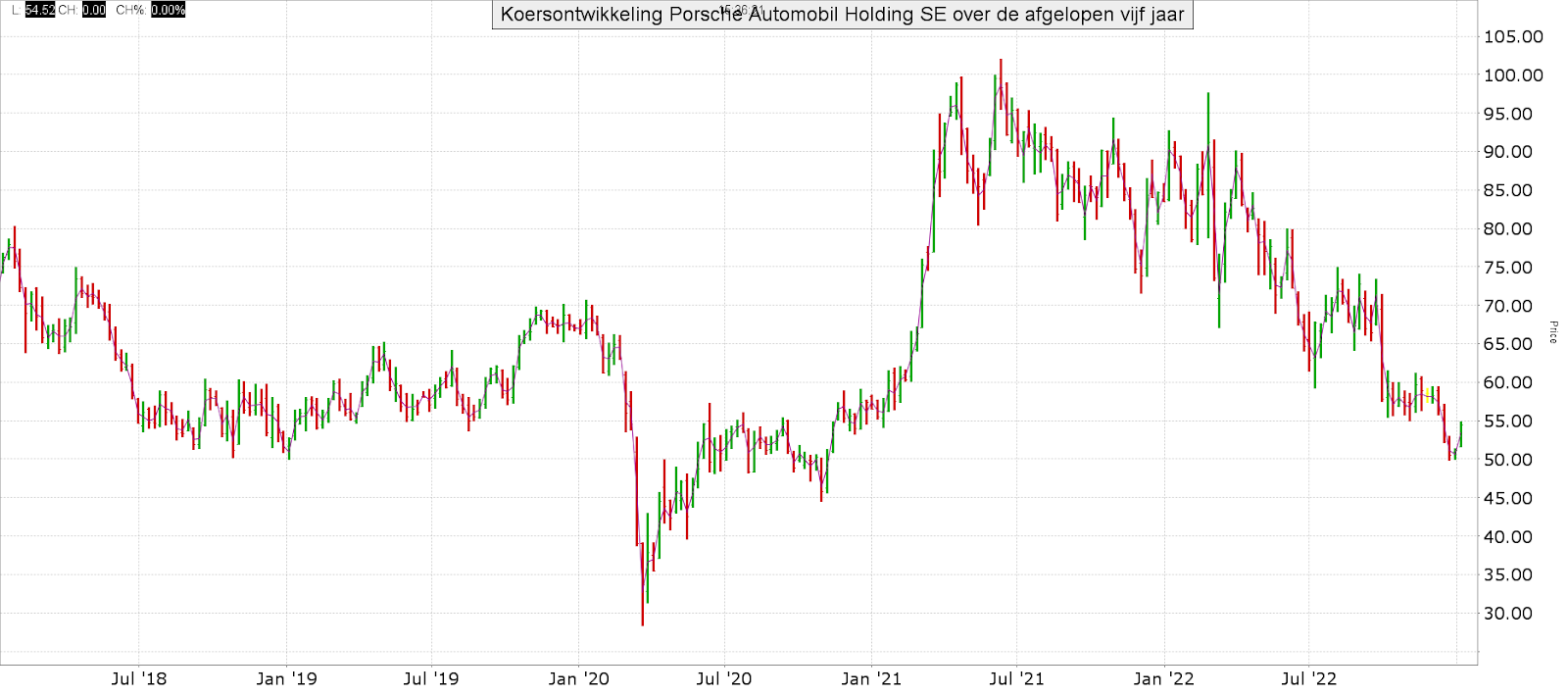 Vijfjarig koersverloop Porsche Automobil Holding SE.