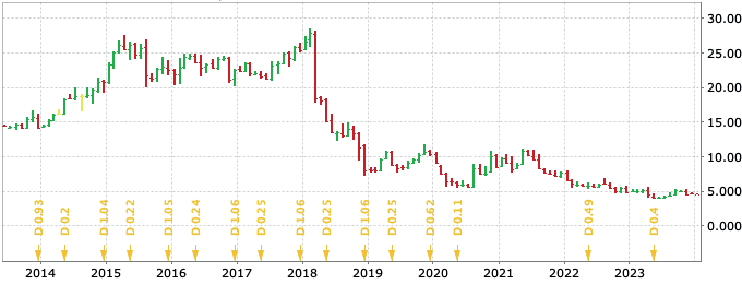 Koersverloop Bpost vanaf de beursgang in 2013.
