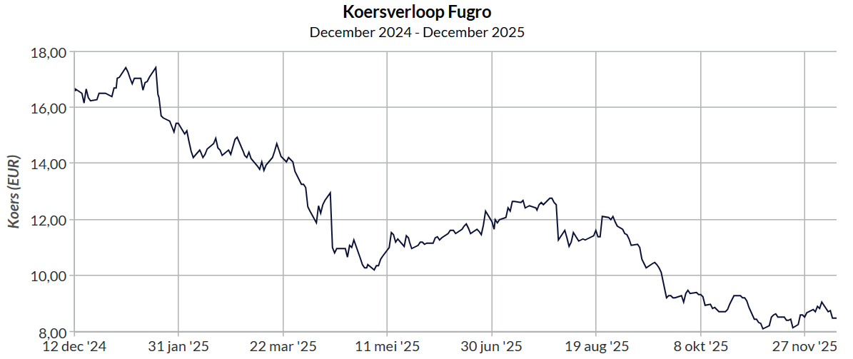 Koersverloop Fugro het afgelopen jaar.