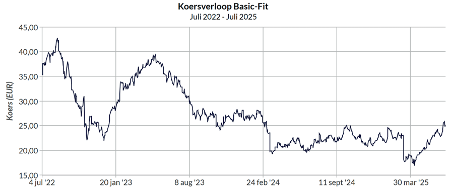 Koersverloop Basic Fit de afgelopen drie jaar. Bron: Beursgenoten.