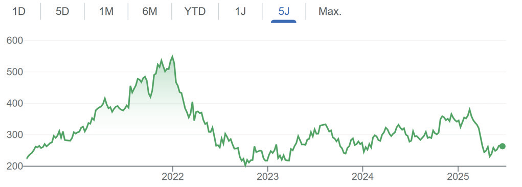 Koersverloop Thule de afgelopen vijf jaar. Bron: Google.