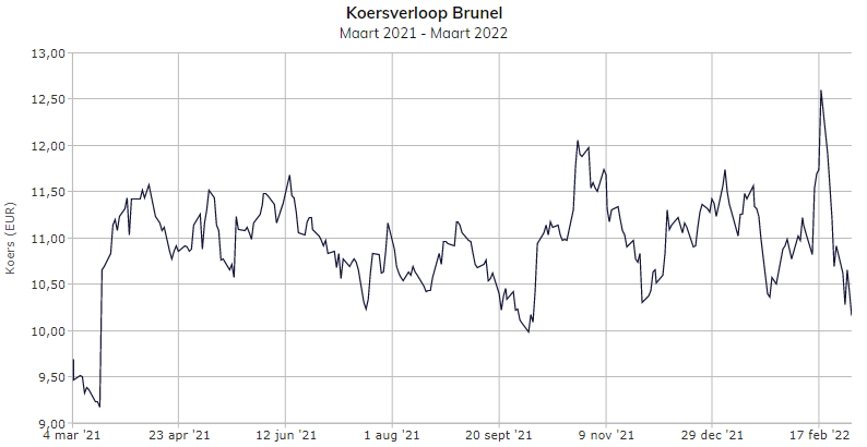 Koersverloop Brunel over de afgelopen 12 maanden.