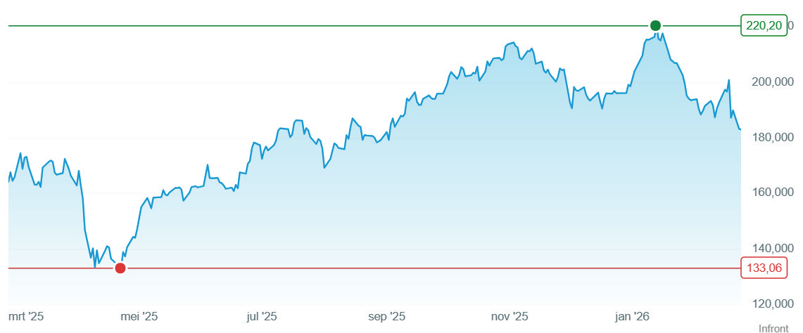 Bron: DeGiro. De teleurstellende leveringsdoelstellingen van Airbus voor 2026 hebben geleid tot een koersdaling.