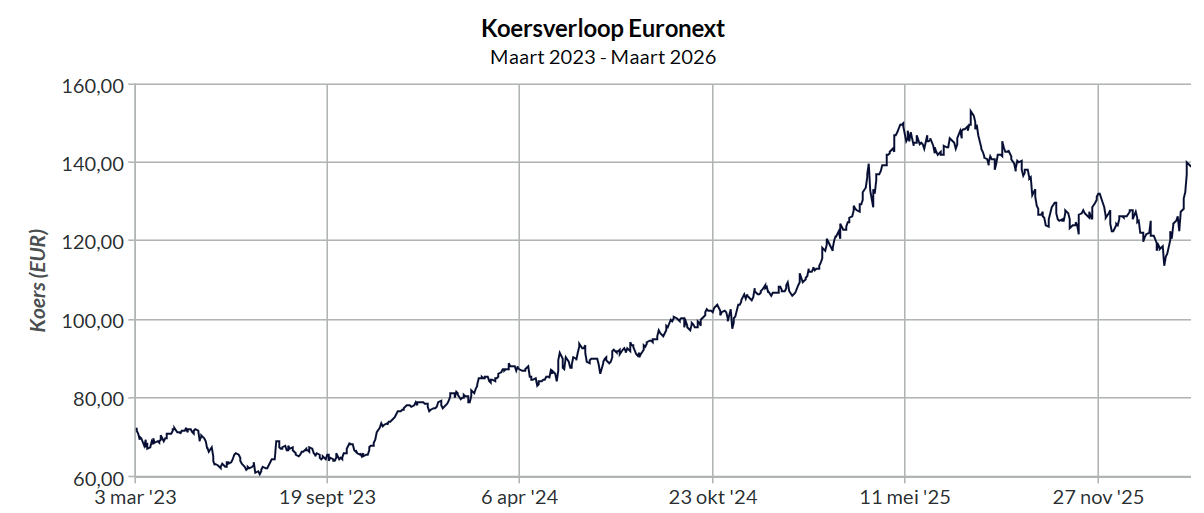 De Europese beurssector is in beweging. Regulering verandert, settlementcycli worden versneld en nationale markten zoeken meer integratie. In dat krachtenveld positioneert Euronext zich nadrukkelijk als de ruggengraat van de Europese kapitaalmarkt. De resultaten over 2025 bevestigen dat het bedrijf operationeel uitstekend presteert. De omzet groeit dubbelcijferig, de EBITDA-marge ligt boven 62 procent en de winst per aandeel stijgt stevig door. De vraag voor beleggers is niet of Euronext vandaag goed draait, maar hoeveel van dat succes al in de koers verwerkt zit. Met een koers rond € 138,80 en een koersdoel van € 150 is de opwaartse ruimte beperkter dan enkele maanden geleden.