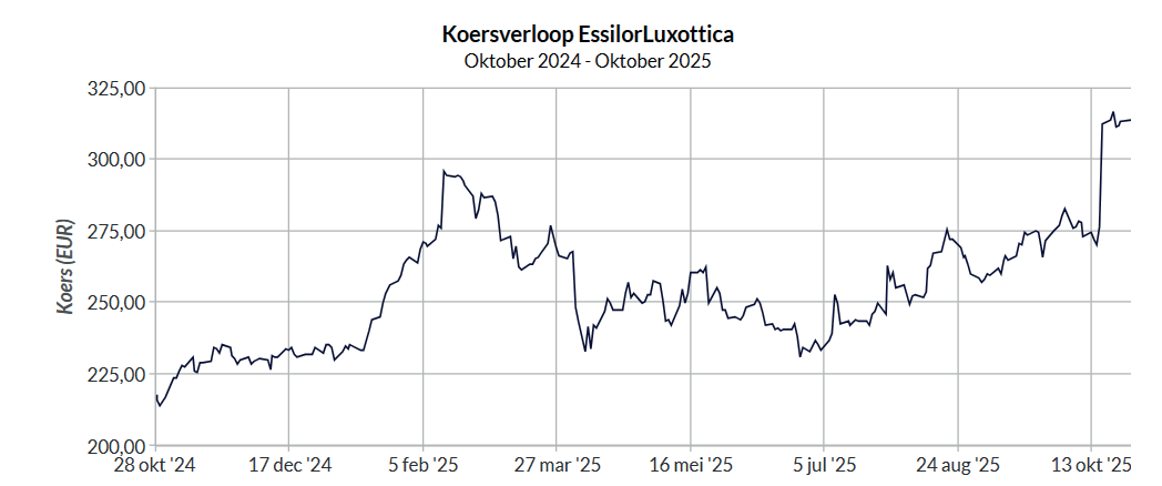 Bron: Beursgenoten. EssilorLuxottica staat ten opzichte van begin dit jaar op een koerswinst van 44%.