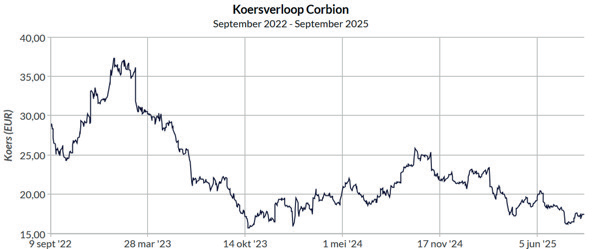 Koersverloop Corbion de afgelopen drie jaar. Bron: Beursgenoten.
