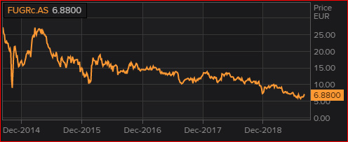 Weinig Nederlandse ondernemingen hebben zo sterk geleden onder de sterke daling van de olieprijs sinds 2014 als Fugro. Het bedrijf was vanouds sterk afhankelijk van opdrachten uit de olie- en gasindustrie, vooral voor het in kaart brengen van bodemstructuren in het kader van opsporing van nieuwe olie- en gasvelden. De daling van de olieprijs leidde ertoe dat de investeringen in opsporing de laatste jaren sterk werden teruggebracht. Fugro zag zich geconfronteerd met dalende omzetten, lagere operationele resultaten en afboekingen op het materieel. Alleen al in de jaren 2014-2016 bedroegen de bijzondere waardeverminderingen meer dan € 1 miljard. Het eigen vermogen daalde van meer dan € 1,5 miljard eind 2017 tot minder dan € 700 miljoen eind vorig jaar. De koers daalde van ruim € 25 begin 2015 tot iets minder dan € 6 medio augustus. Sindsdien heeft de koers zich gedeeltelijk hersteld in de richting van € 7.