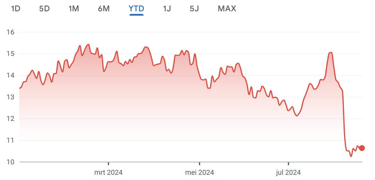 Figuur 1. Janus International is dit jaar ruim 20% gedaald. Bron: Google.
