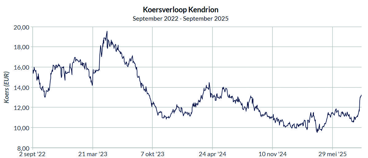 Koersverloop Kendrion de afgelopen drie jaar. Bron: Beursgenoten.