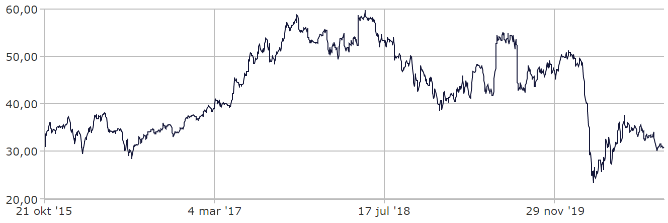52-weeks laag/hoog: € 23,20 / € 51,70