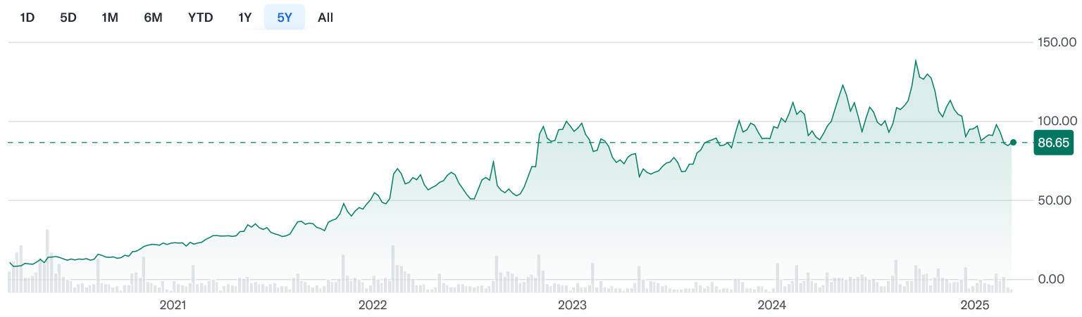 Koersverloop Wallenius Wilhelmsen de afgelopen vijf jaar. (bron: Yahoo Finance)